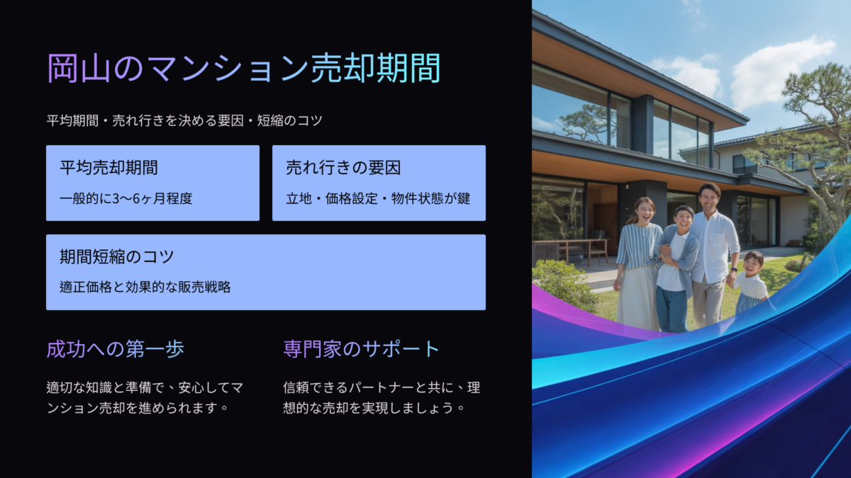 この記事では、岡山のマンション売却期間の平均を押さえたうえで、